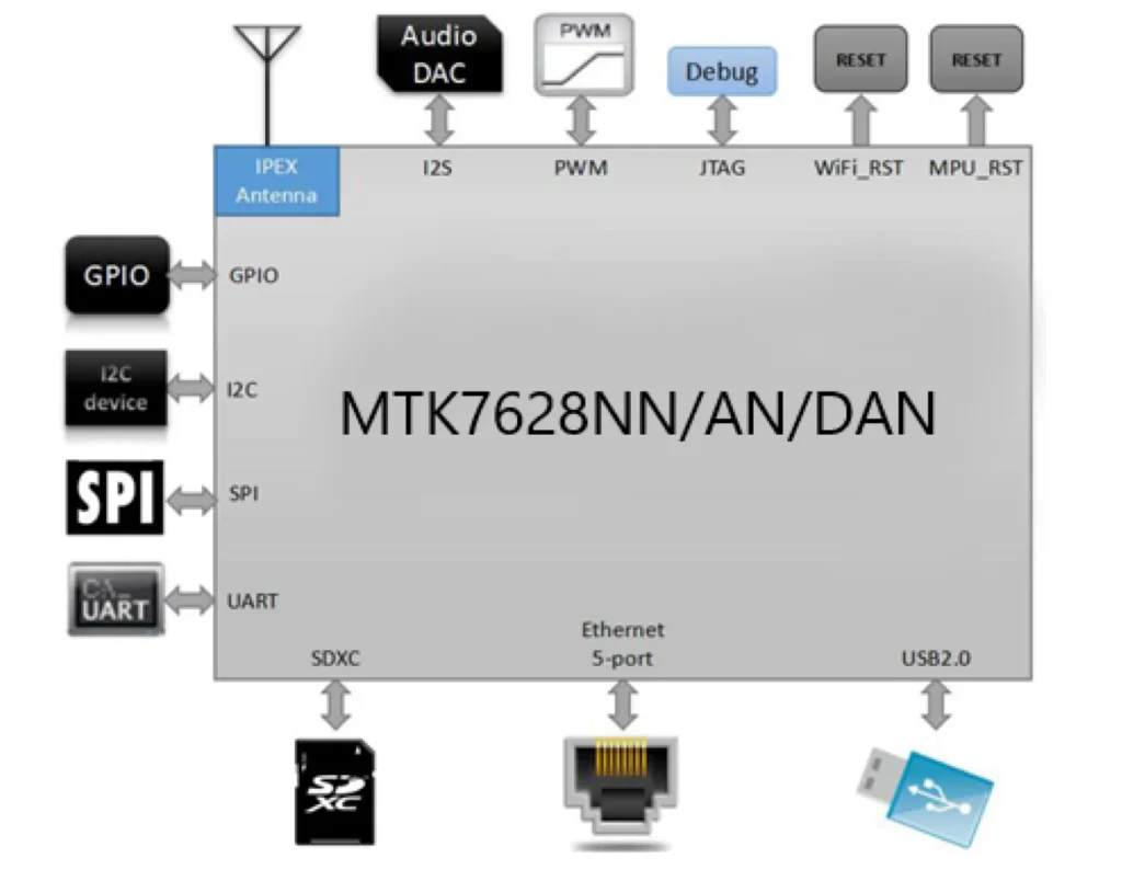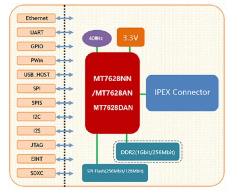 This module provides access to all the interfaces of MT7628AN, supports Linux and OpenWrt operating systems, and allows for custom development. With its rich interfaces and powerful processors, it can be widely used in smart devices or cloud service applications.