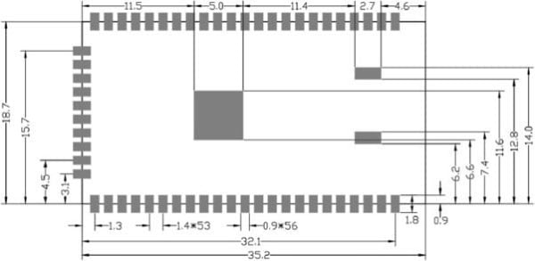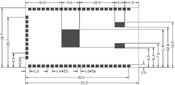 Dimensions of ATOM-080M MediaTek MT7628 SOM