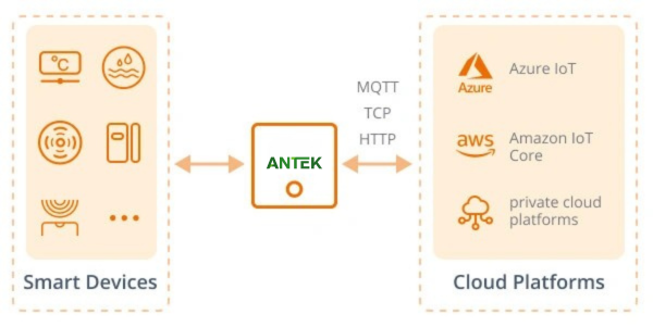 Our IoT Gateway provides rich APIs for rapid IT application development and seamless end-device integration. It supports communication protocols like MQTT, TCP, and HTTP and can integrate with public cloud platforms such as Azure IoT, Amazon IoT Core, and private cloud platforms.