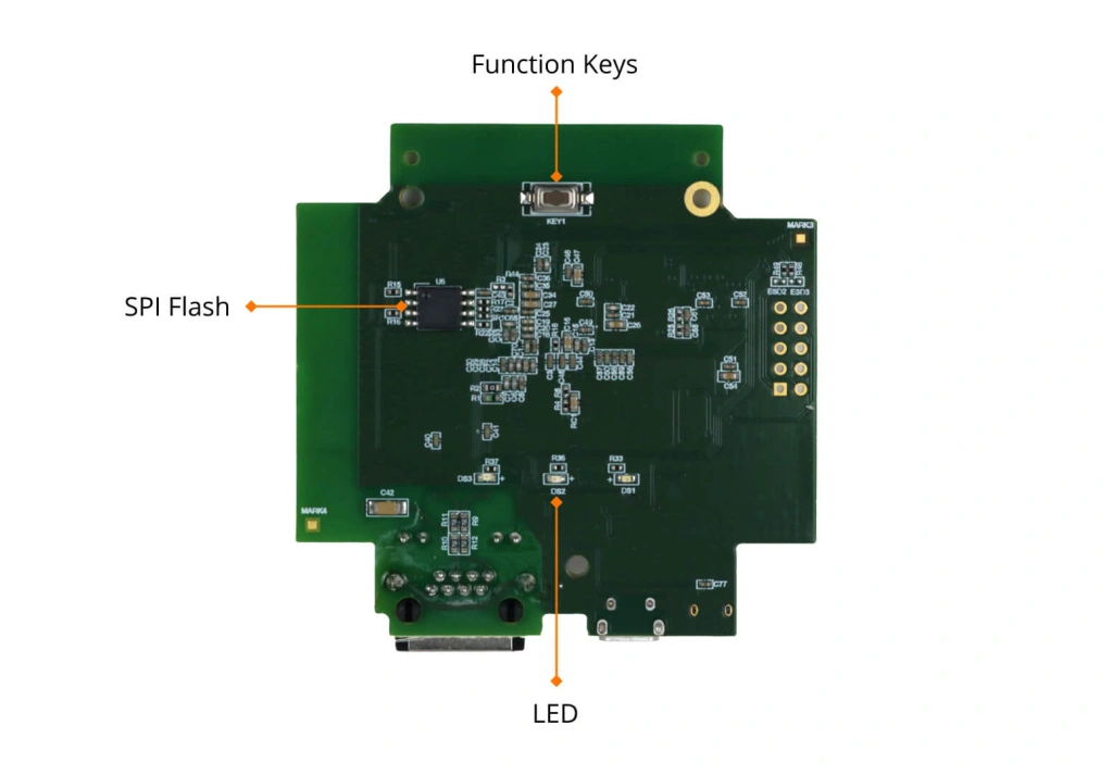 Before setting up your development Test Bed, connect the PCB Serial Port (TX, RX, GND) to your developed PC via a USB-to-serial bridge.