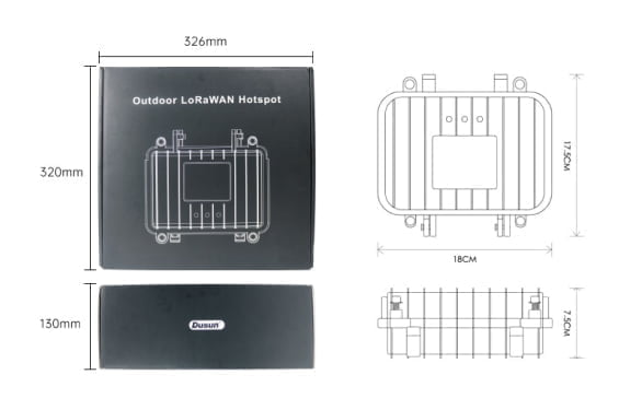 Kích thước và Đóng gói của Gateway ATGW-014 LoRaWAN Ngoài Trời