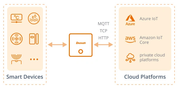 Gateway IoT của chúng tôi cung cấp bộ API phong phú nhằm hỗ trợ phát triển ứng dụng CNTT một cách nhanh chóng và tích hợp thiết bị đầu cuối liền mạch. Thiết bị hỗ trợ các giao thức truyền thông như MQTT, TCP và HTTP, đồng thời có khả năng tích hợp với các nền tảng đám mây công cộng như Azure IoT, Amazon IoT Core, cũng như các nền tảng đám mây riêng.
